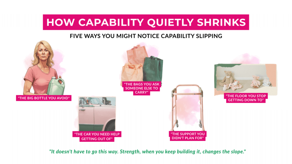 In exercise science, age-related muscle loss is called sarcopenia. It begins earlier than many women realise. It accelerates as you age. And if you don’t challenge your muscles, strength declines piece by piece.