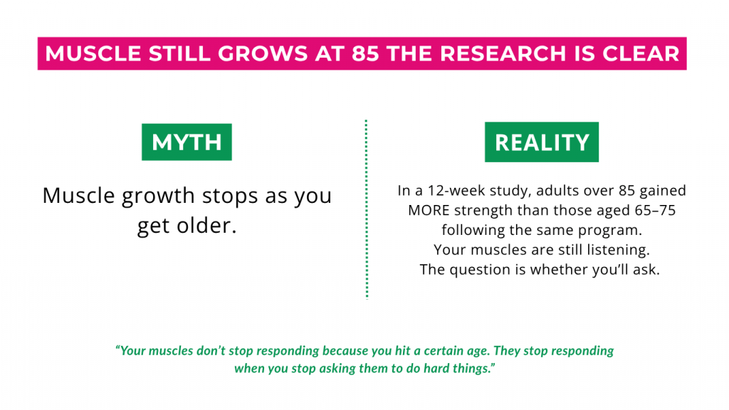 Your muscles don’t stop responding because you hit a certain age. They stop responding when you stop asking them to do hard things.