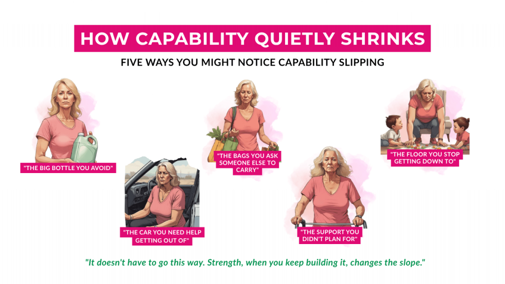 In exercise science, age-related muscle loss is called sarcopenia. It begins earlier than many women realise. It accelerates as you age. And if you don’t challenge your muscles, strength declines piece by piece.